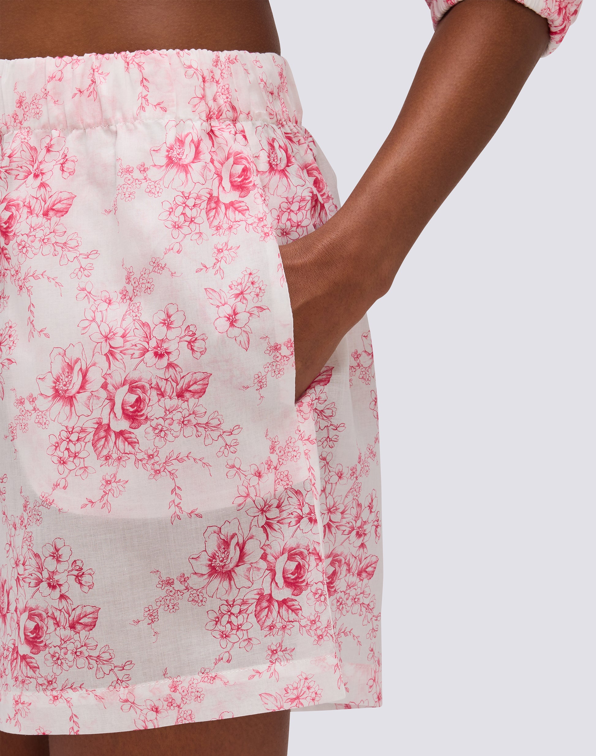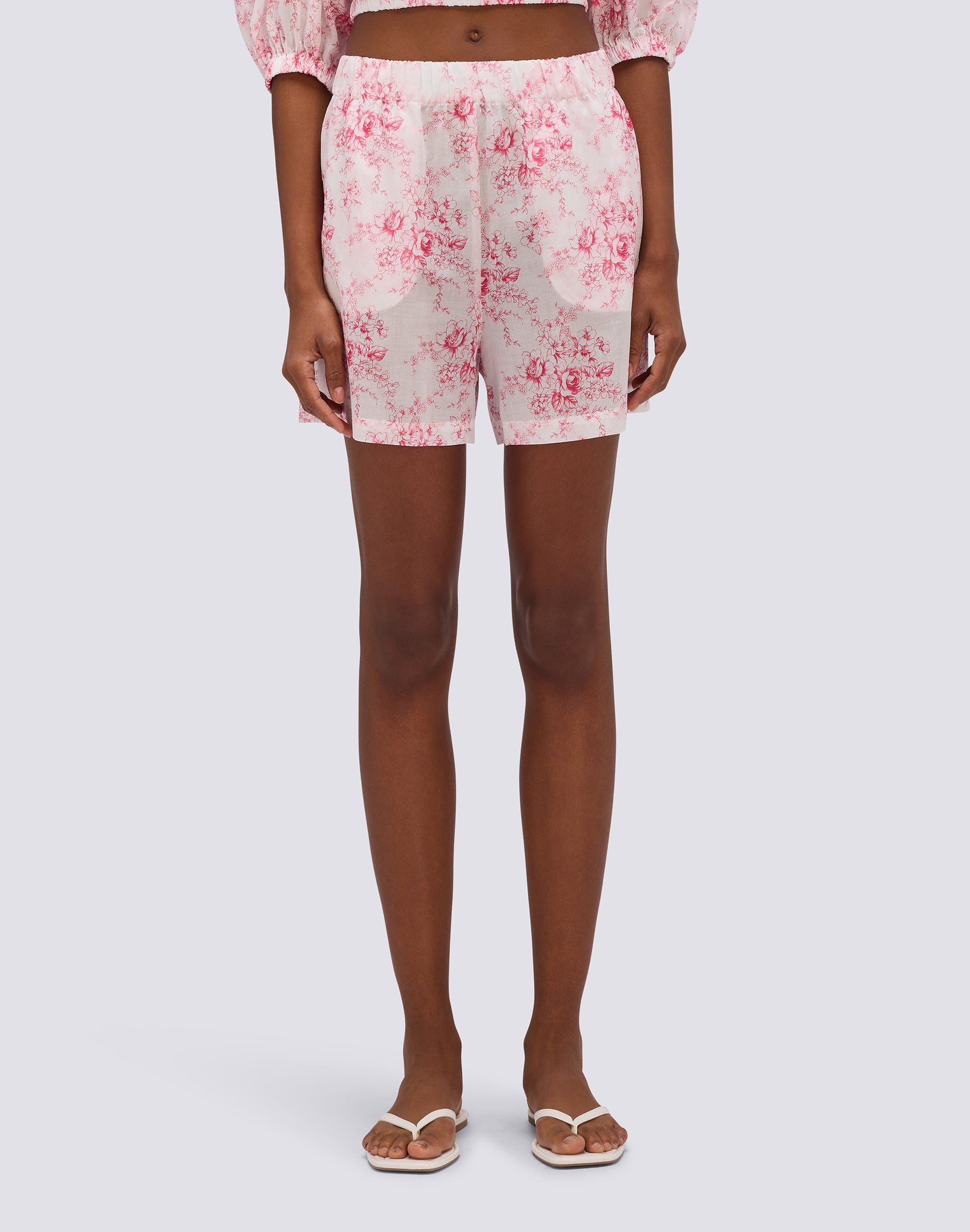 SHORT FEMME À TAILLE ÉLASTIQUE MOTIF ROSE DE JOIE