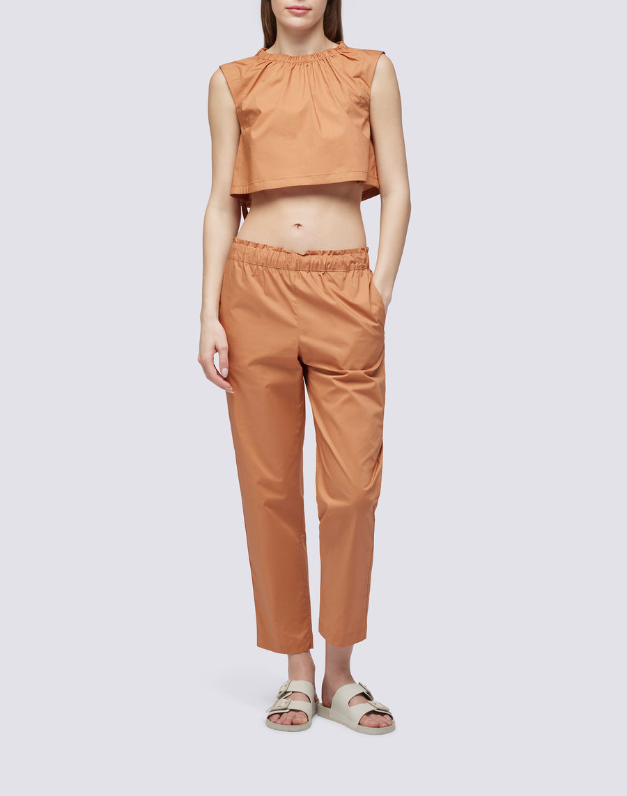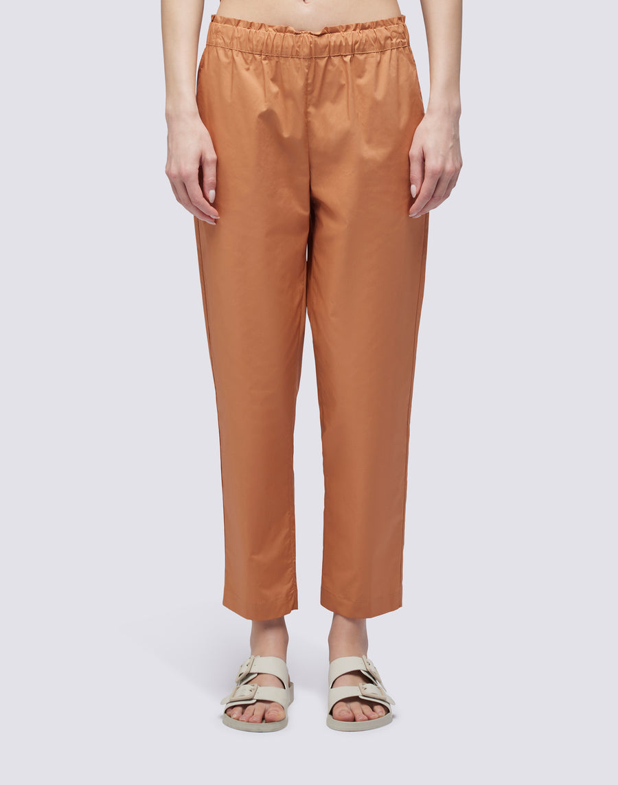 PANTALON EN POPELINE À TAILLE ÉLASTIQUE