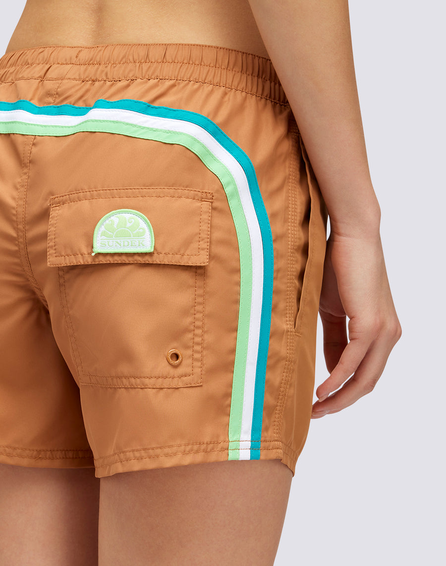 Avec le short de plage pour femme Coast, vous pourrez profiter d'un ajustement parfait grâce à la taille élastiquée, sans sacrifier le style. L'emblématique arc-en-ciel Sundek au dos en fait une pièce incontournable de votre tenue de plage.