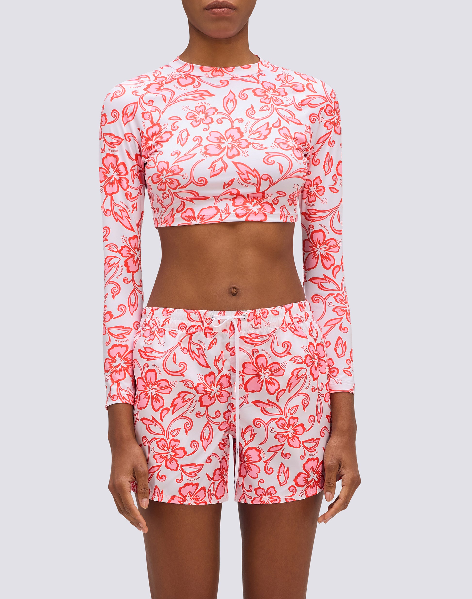 Prête à profiter de la mer avec le short de bain pour femme Coast, fabriqué en tissu recyclé Repreve®. L'imprimé iconique SK23 et l'ambiance florale vous offrent un look unique à arborer sous le soleil estival.