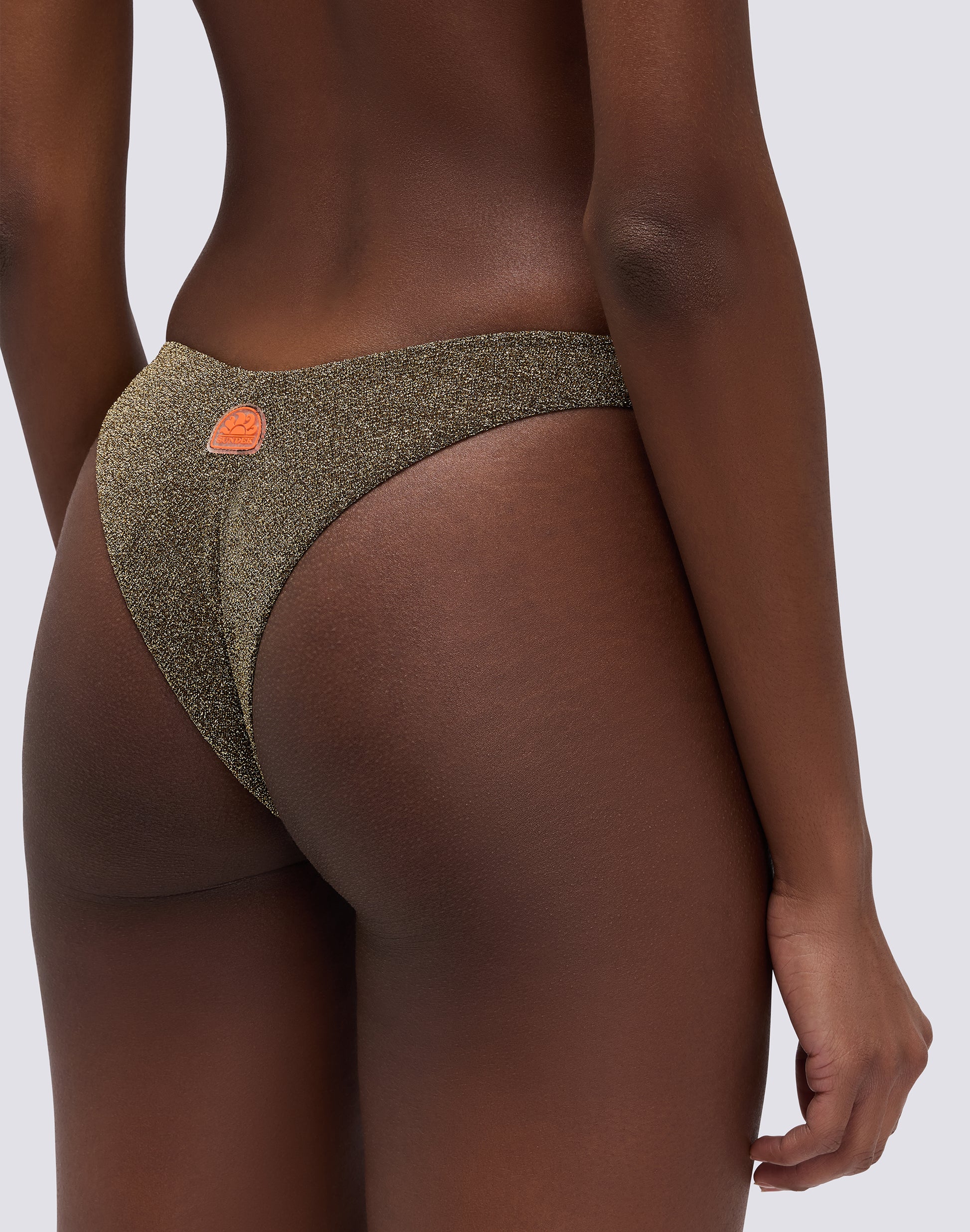 Ajoutez une touche d'élégance à votre garde-robe de plage avec notre slip féminin Loren en lurex. Ce dernier ajoute un bel éclat à la taille basse. Ajoutez une touche de glamour à vos tenues avec cette culotte unique.
