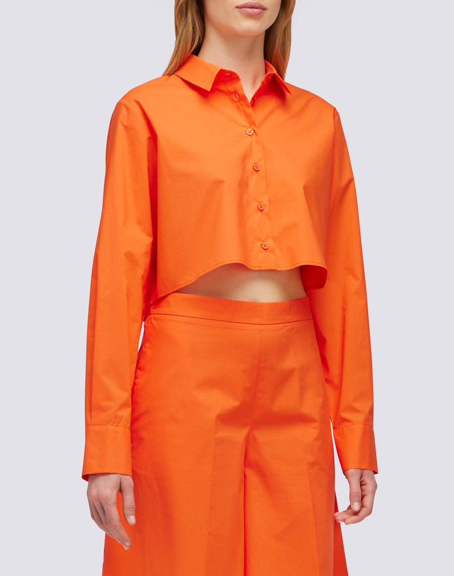 Confectionnée en popeline de coton douce, cette chemise courte à manches longues est parfaite pour toutes les occasions. Créez un look sophistiqué et féminin qui correspond à votre style unique.