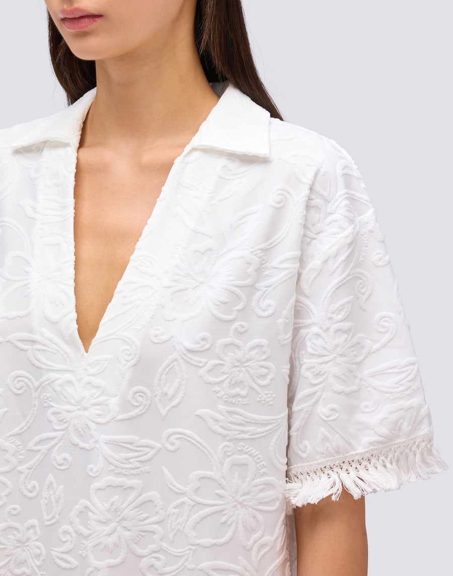 ROBE COURTE À FRANGES EN ÉPONGE JACQUARD