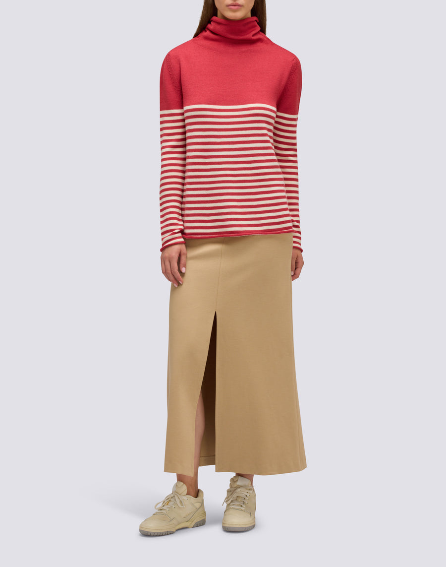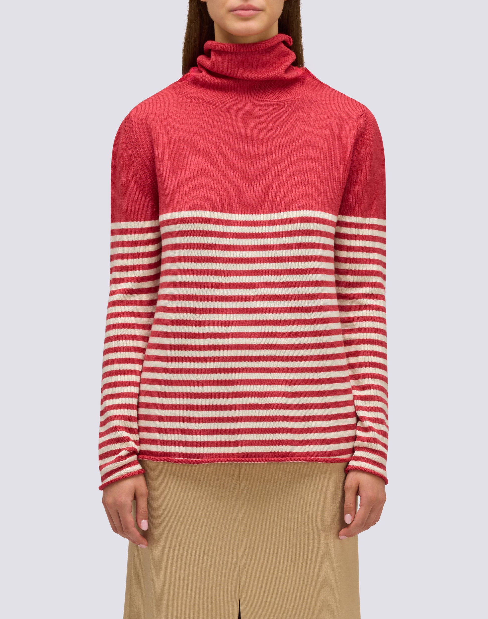 PULL COL MONTANT FEMME AVEC DÉTAIL RAYÉ