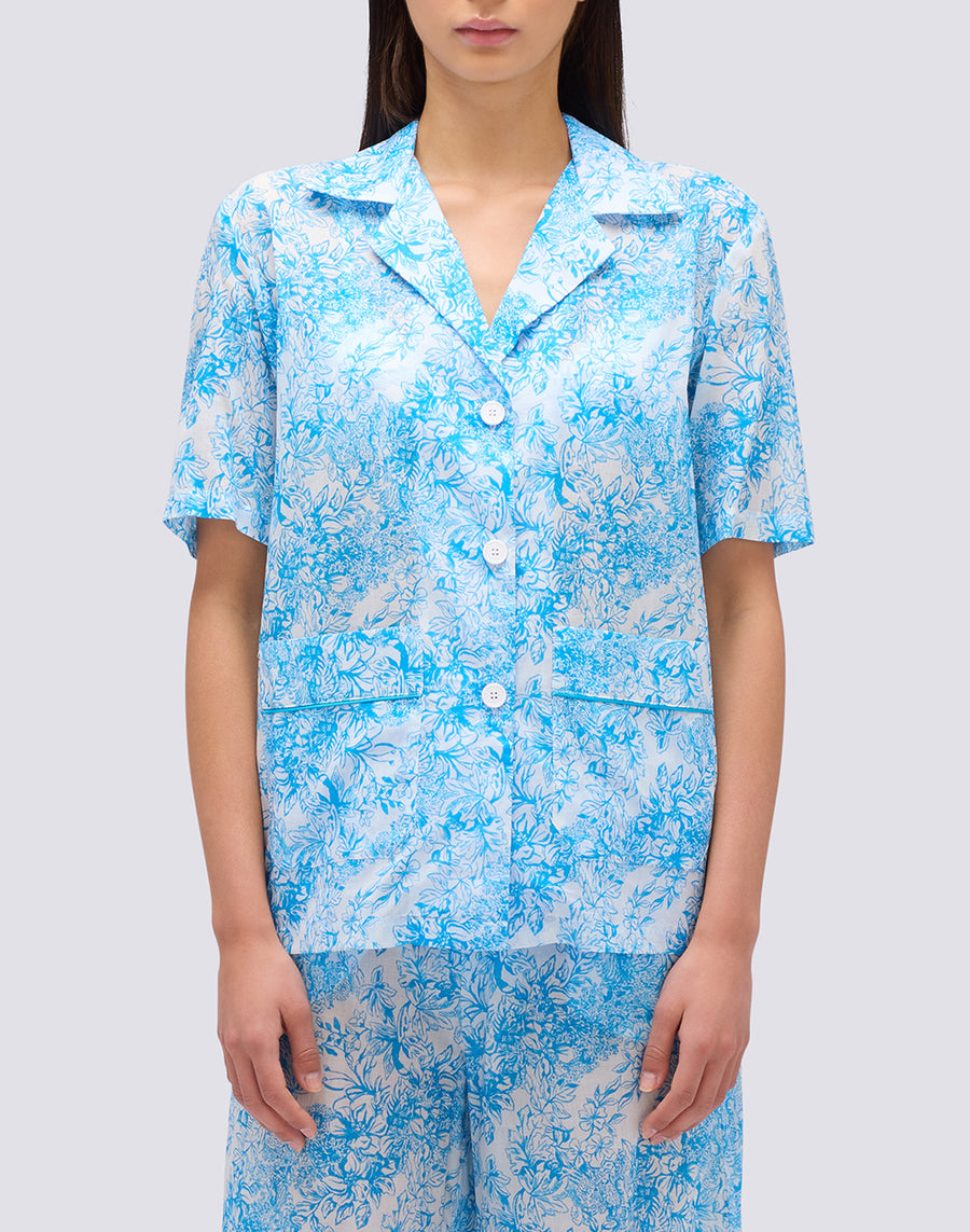 Chemise femme à motif Fleur De Joie, à associer aux bikinis ou shorts de cette collection, confectionnés dans le même motif, pour créer des looks coordonnés.